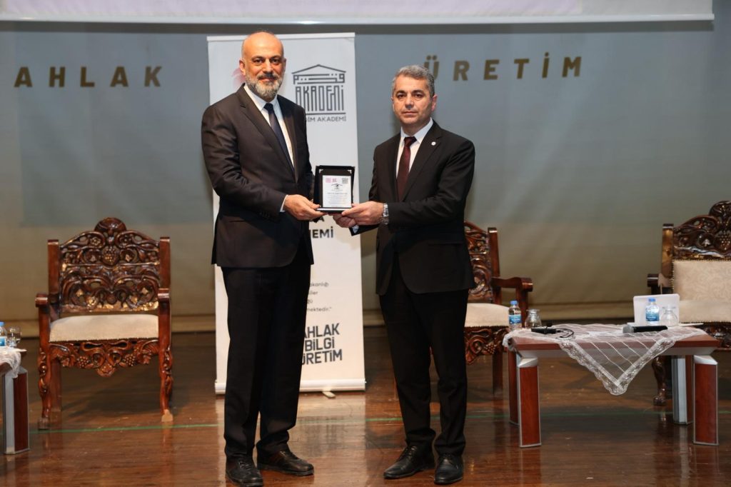 Panelistlere plaketleri, Plaketler, Rektör Prof. Dr. İbrahim Özcoşar, Doç. Dr. Ahmet Kayaoğlu ve Dr.Öğr.Üyesi Sibel Ceylan Yiğit tarafından takdim edildi.